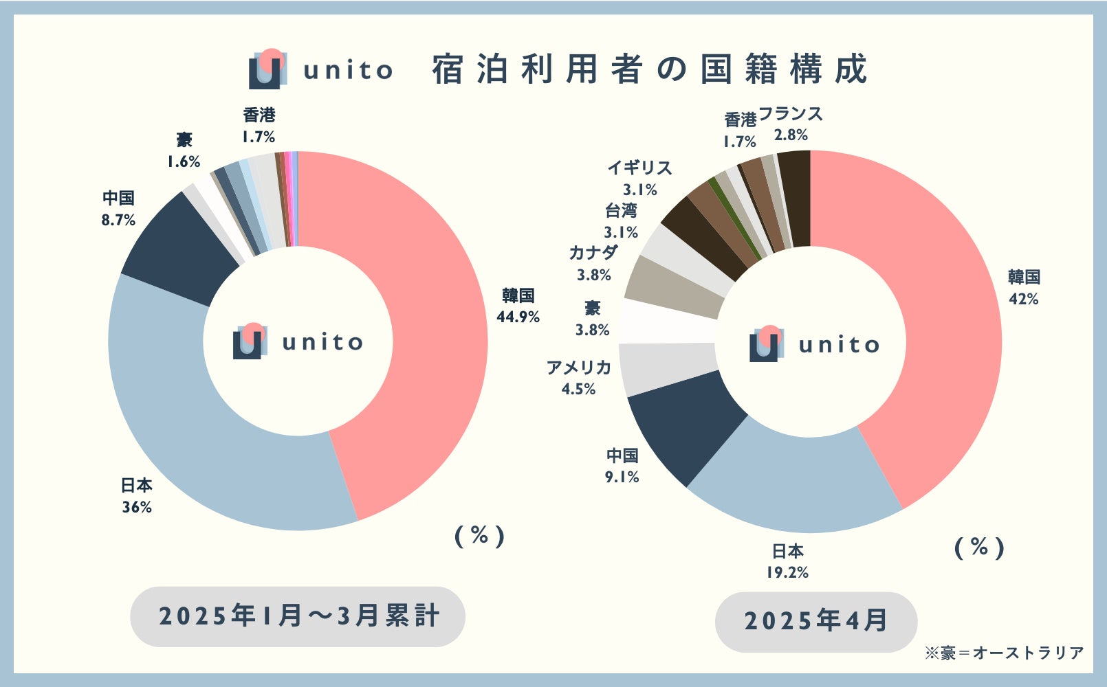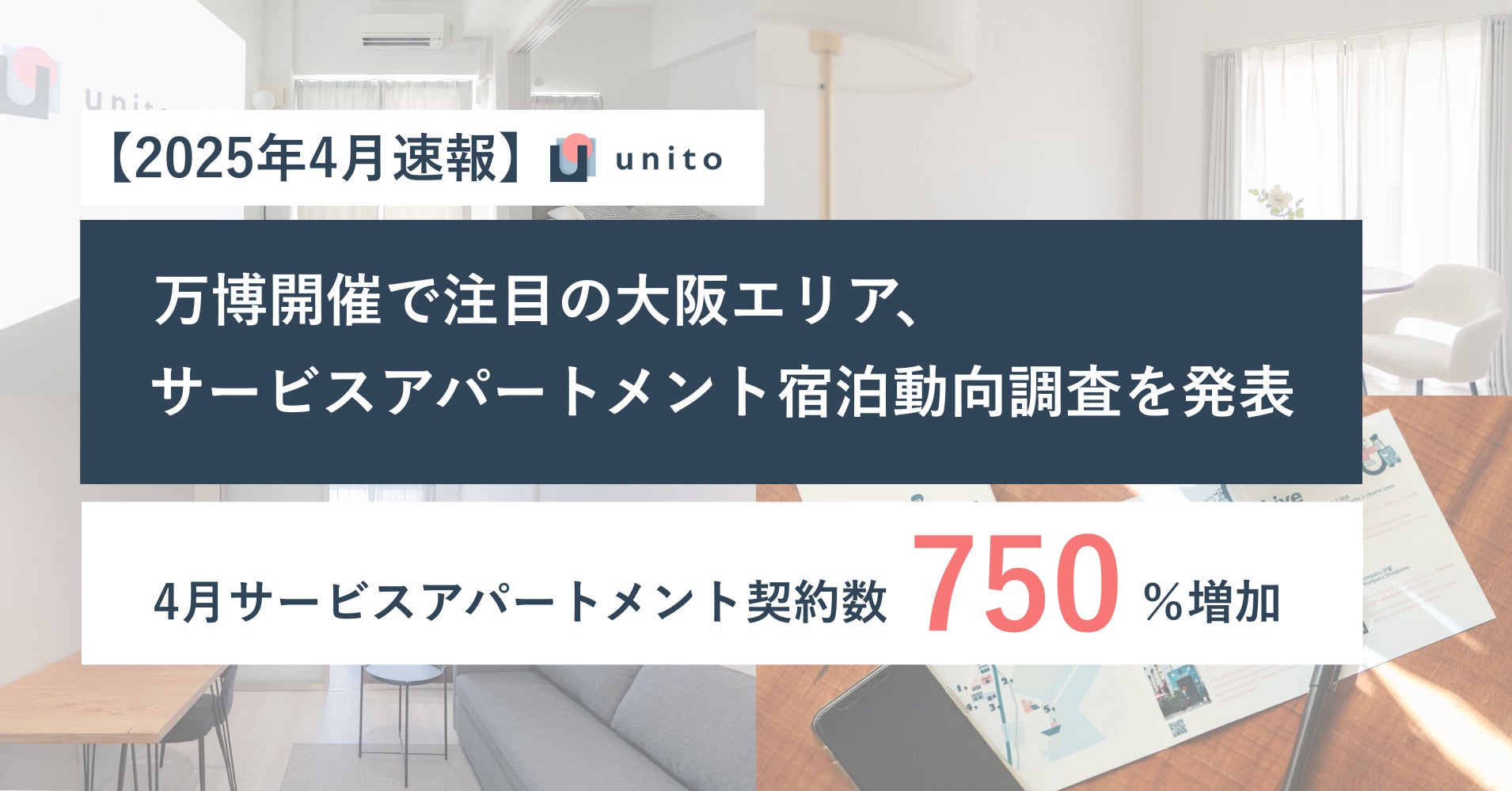 株式会社Unito(本社:東京都目黒区、代表取締役:近藤佑太朗、読み:ユニット、以下、当社)は、2025年4月13日から開催中の万博にあわせ、大阪エリアで当社が運営する「家具・家電付きサービスアパートメント」における2025年4月宿泊実態調査の速報を発表いたします。