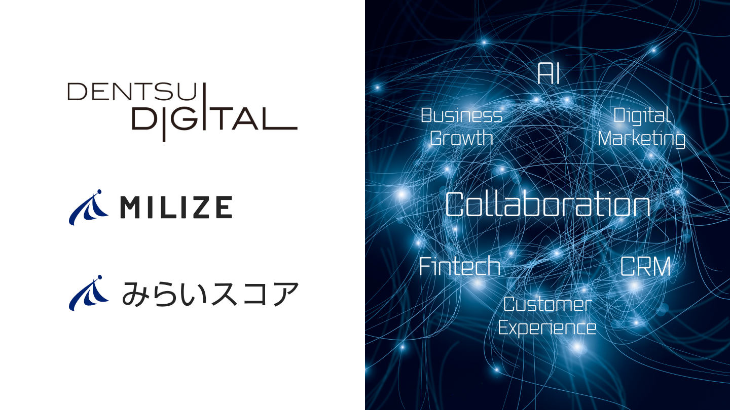 AIテクノロジーを提供するフィンテックスタートアップのMILIZEとみらいスコアが電通デジタルと業務提携