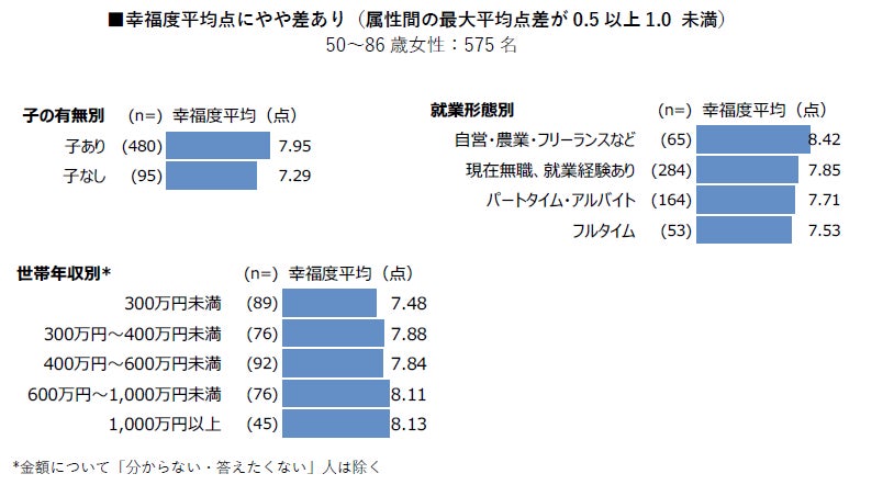 ■50~86歳女性の幸福度平均は10点満点(0~10点)中7.84点。2年前とほぼ変わらず