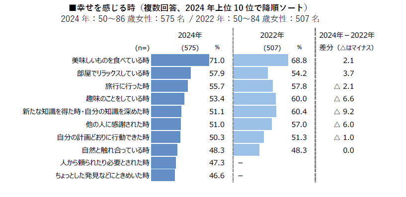 身近で平凡な生活に“幸せ”を見出す傾向が強まっている50代以上女性