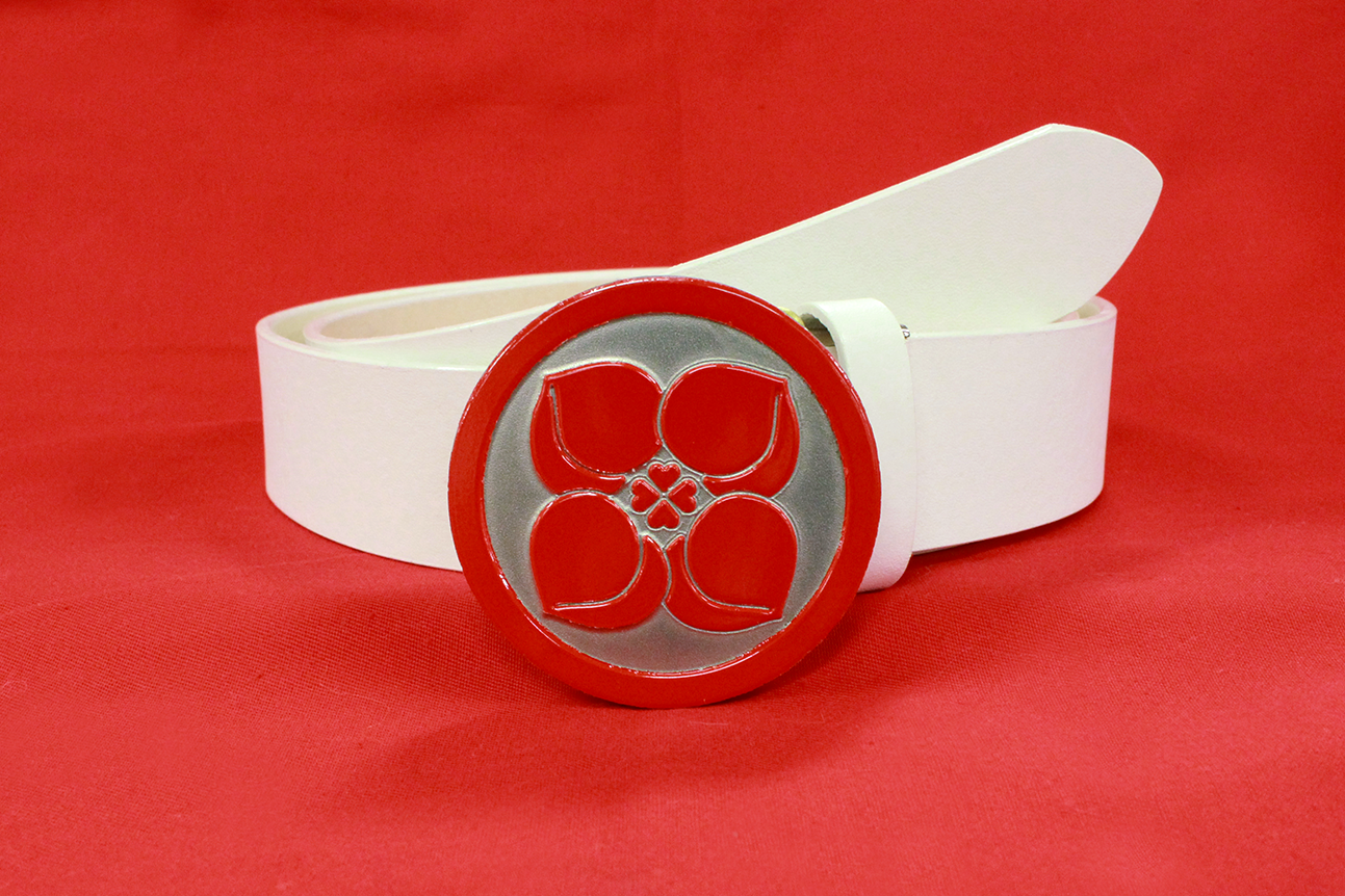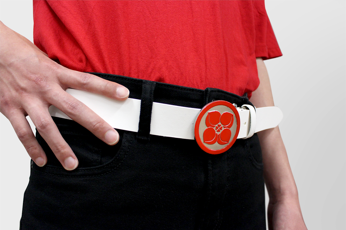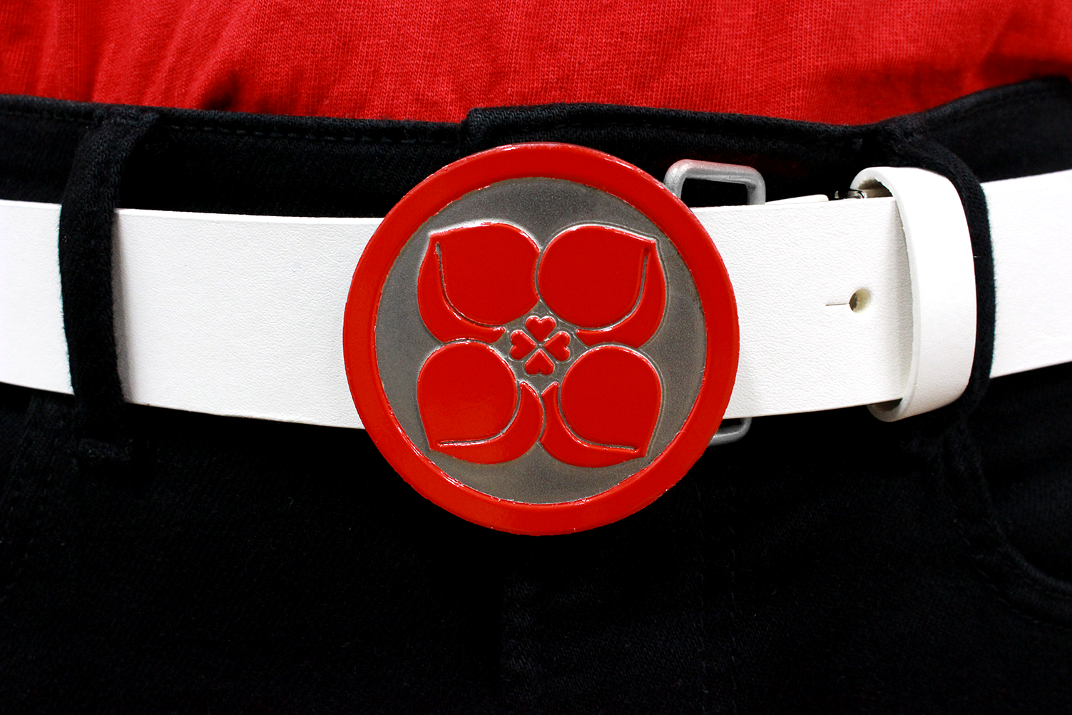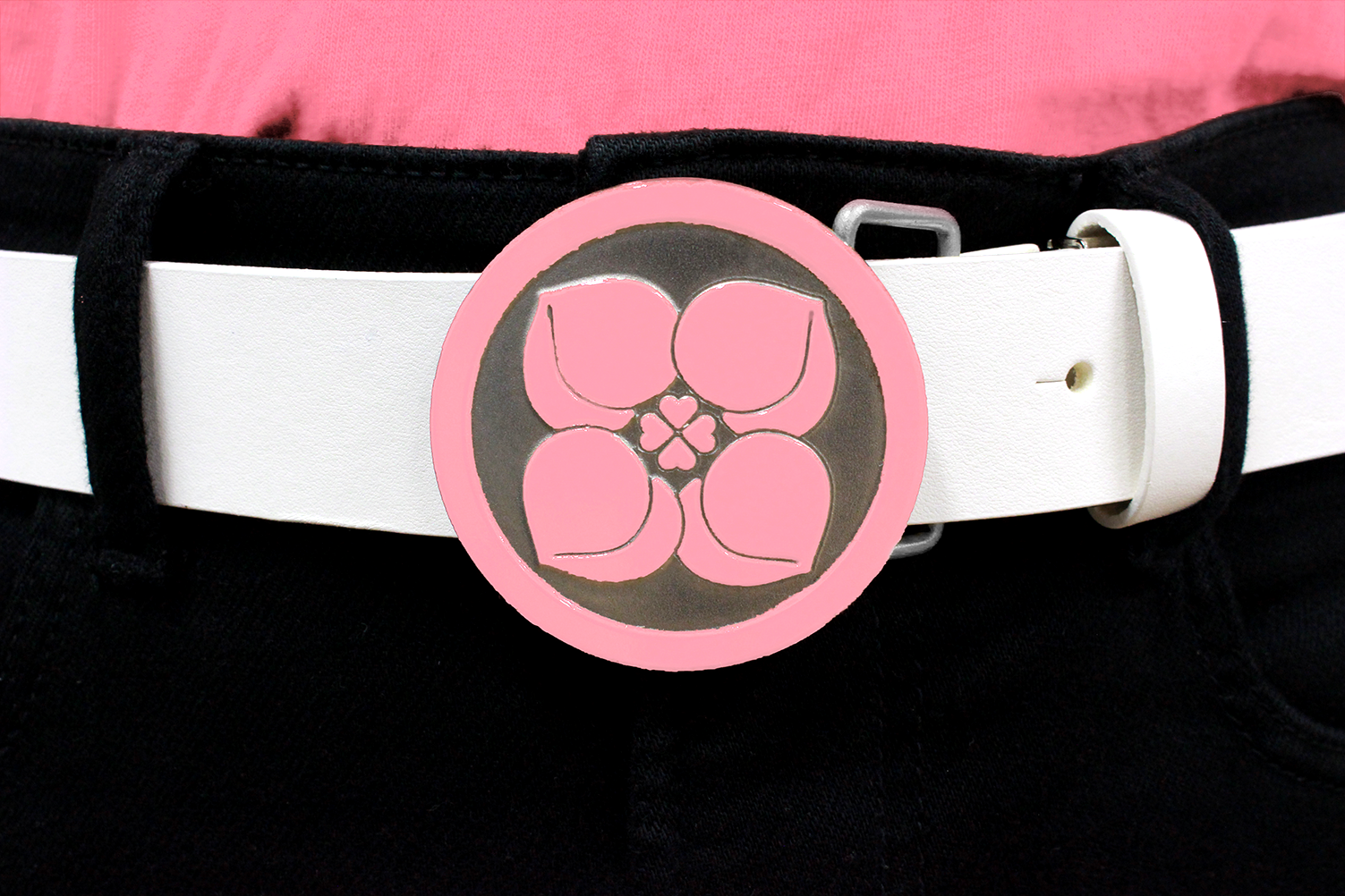 ももクロ家紋ベルトのバックルは、キャステムの50年を超える歴史ある精密鋳造技術にて、ももクロの家紋をそのままの形でステンレスで製作しています。また、ベルト自体も本格的な水牛革を採用しており、長く綺麗に使用頂けるよう、素材にもこだわっています。