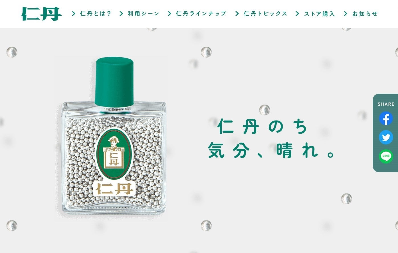 今回のブランドサイトリニューアルでは、仁丹の風味をより多くの皆様に知っていただけるように、香りと味の解説を加えました。さらに、どんな時に使うのか今ひとつわからないとの声にお応えして、仁丹の利用シーンを紹介しています。また、ブランドサイトのデザインも「仁丹=おじいちゃんおばあちゃん世代のもの」というイメージを脱するために、仁丹のパッケージに使用されている、清涼感や植物を連想させるグリーンと仁丹のシルバーの色合いを大切にしつつ、カジュアルなトーンにしました。