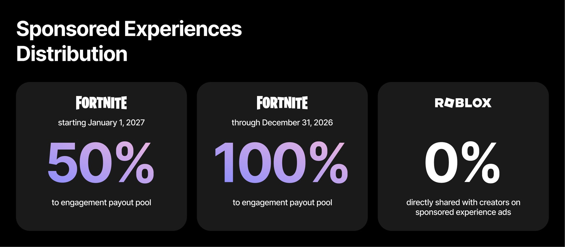 2025年11月1日(米国時間)より、エンゲージメント配当を更新し、フォートナイトに新規プレイヤーを呼び込んだり、離脱していたプレイヤーを呼び戻したりしたクリエイターへ、貢献に応じた報酬を配分します。クリエイターは、対象プレイヤーがエンゲージメント配当の収入総額に貢献した分の75%を、最初の6ヶ月間受け取ることができます。