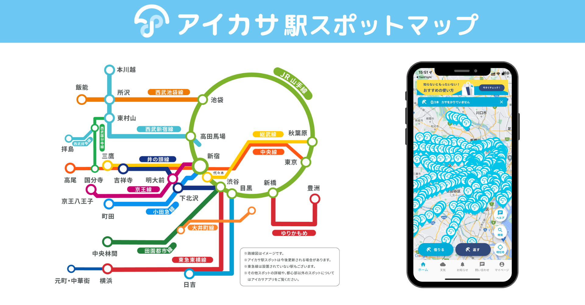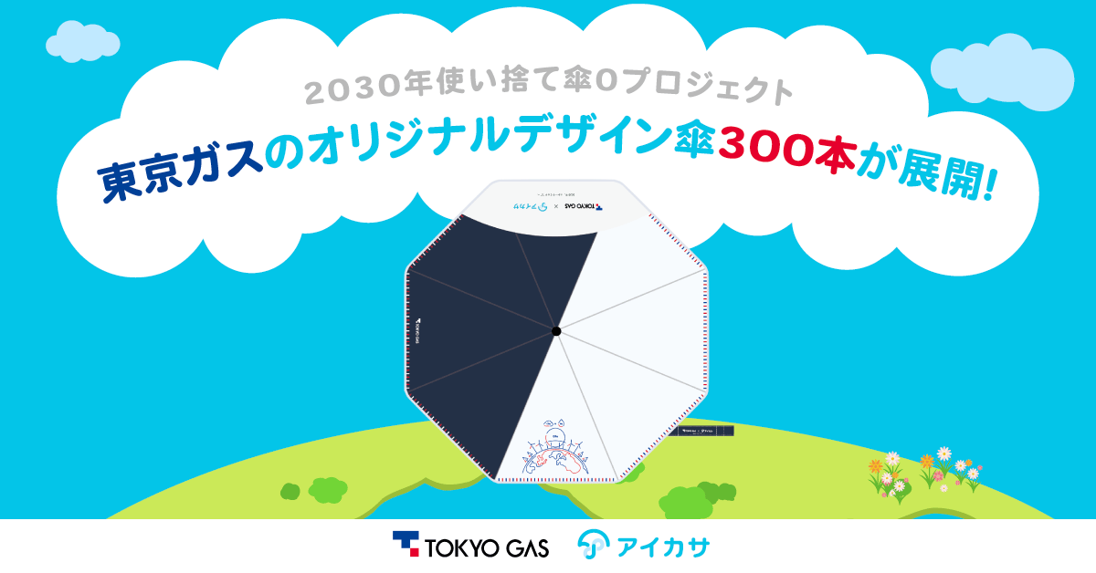 日本の使い捨て傘ゼロを目指す傘のシェアリングサービス「アイカサ」を運営する株式会社Nature Innovation Group(本社:東京都渋谷区、代表取締役:丸川照司、以下「アイカサ」)が主催する2030年使い捨て傘ゼロプロジェクト(※1)の一環で、この度、東京ガス株式会社(本社:東京都港区、代表執行役社長:内田 高史、以下「東京ガス」)のオリジナルデザイン傘300本を池袋、渋谷、田町などを中心に都内各所に展開しました。