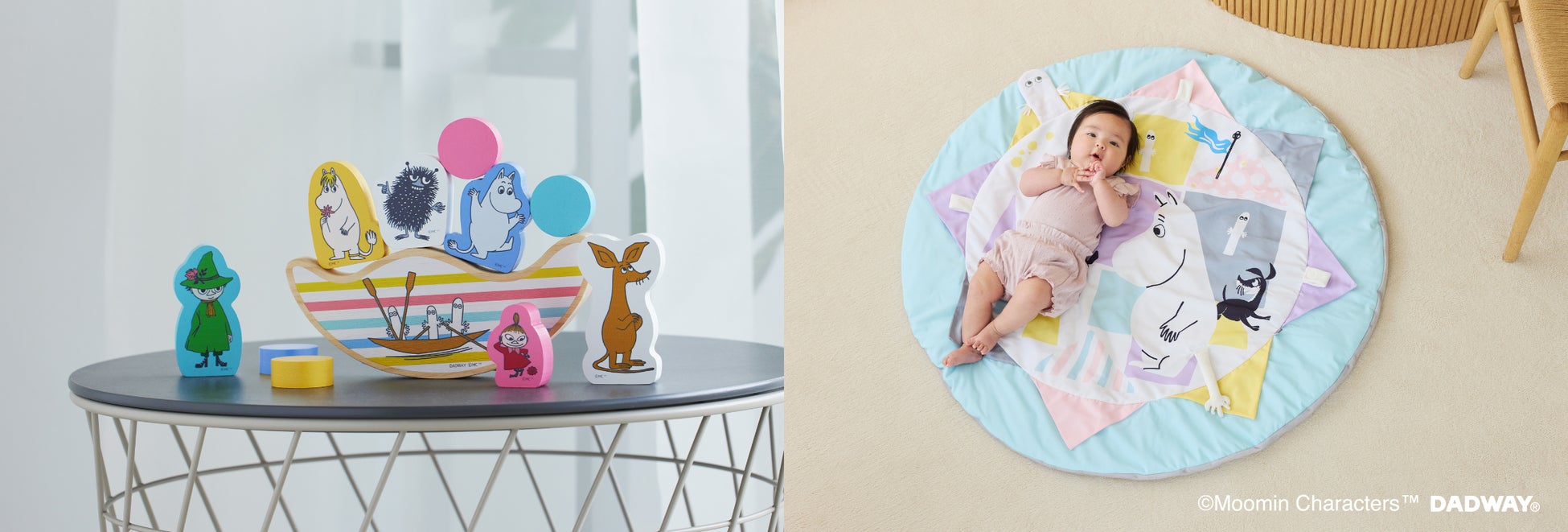 北欧フィンランド生まれのキャラクター「MOOMIN」のベビーブランド。北欧を感じさせるテキスタイルとかわいらしいデザインが、赤ちゃんと一緒に過ごす時間を彩ります。世界中で愛されるムーミンとその仲間たちのラインナップは、赤ちゃんはもちろんのこと、おしゃれでこだわり派の大人の方にもおすすめ。やわらかなトーンで色彩豊かにデザインされた、プレイマットやベビーボールなど、8月9日のムーミンの日に向けた新商品をご覧いただけます。