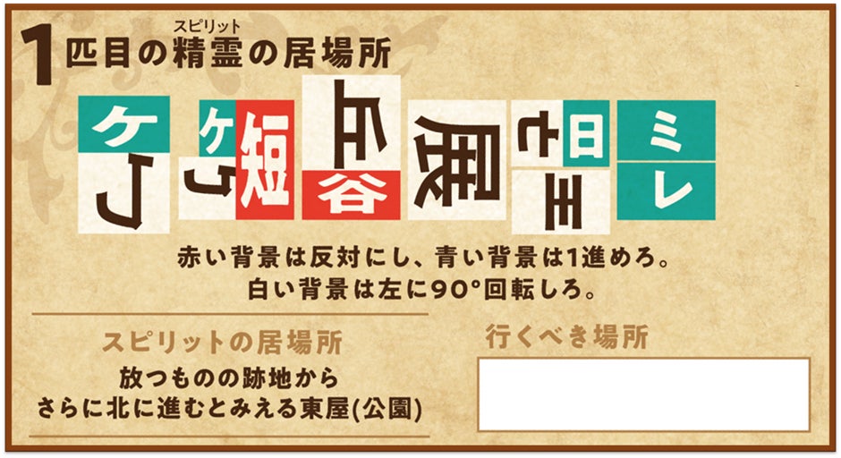 4つのエリア(サセボシティ・ハウステンボス・クジュウクシマ・クロシマ)からスピリット(宝)を捜索する本作。謎を解きながら様々なエリアを捜索し、謎の答えが解けたら参加キットを見ながら次のポイントに向かいます。