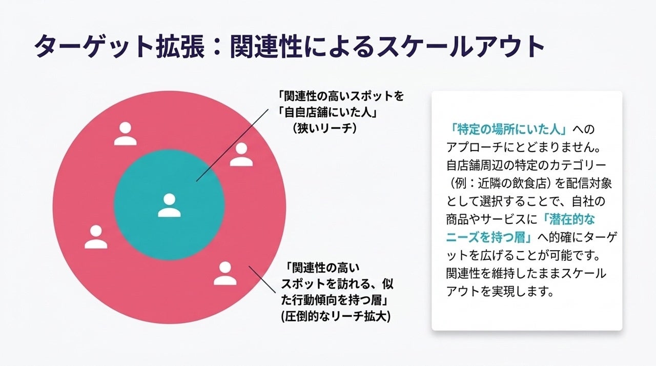 関連施設カテゴリの来訪者へ配信対象を拡張した人流広告