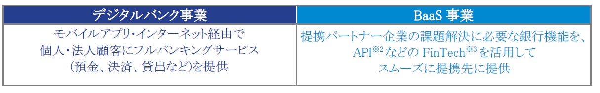 これまでの成長を支えてきたテクノロジーの強化とアライアンスの拡大によって、デジタルバンク事業とBaaS事業のさらなる成長を実現し、銀行を超えた存在へ進化すべく、最先端のテクノロジーとデータを駆使し、新規事業領域に進出します。