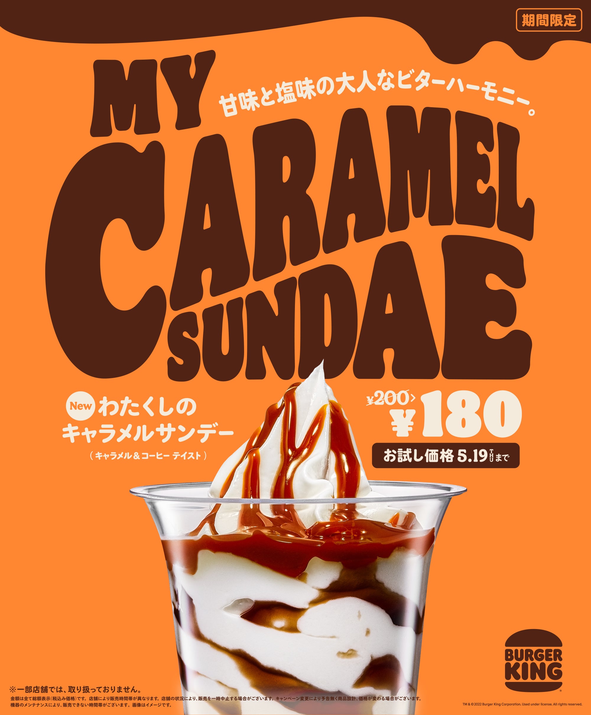 【2週間限定・数量限定】5月6日(金)~5月19日(木) 【同時開催】新発売『わたくしのキャラメルサンデー』をお試し価格の200円→180円にて販売