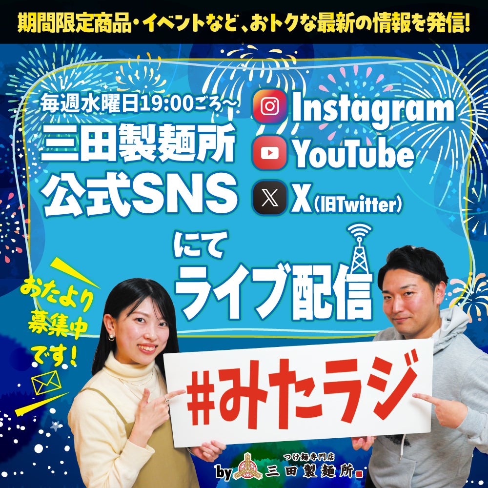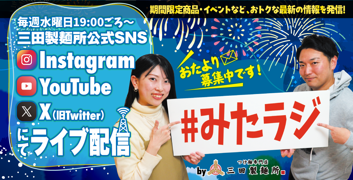 三田製麺所公式LIVE配信 『#みたラジ』が7月より毎週水曜日19時にお引越し!