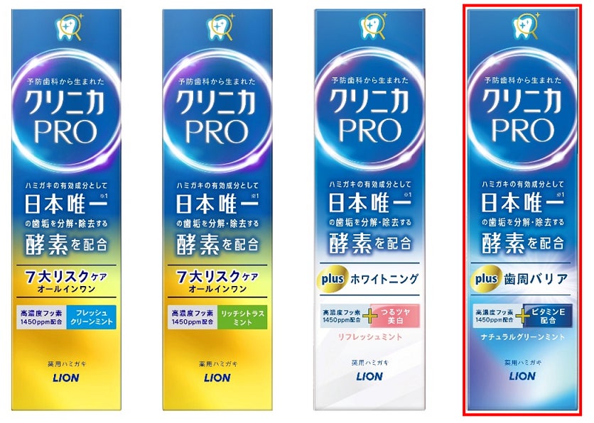 ・お口の様々なリスクの原因である「歯垢」を、日本で唯一(※2)、分解・除去する有効成分「酵素」を配合した『クリニカPRO』から、『クリニカPRO plus 歯周バリア ハミガキ』を新発売。