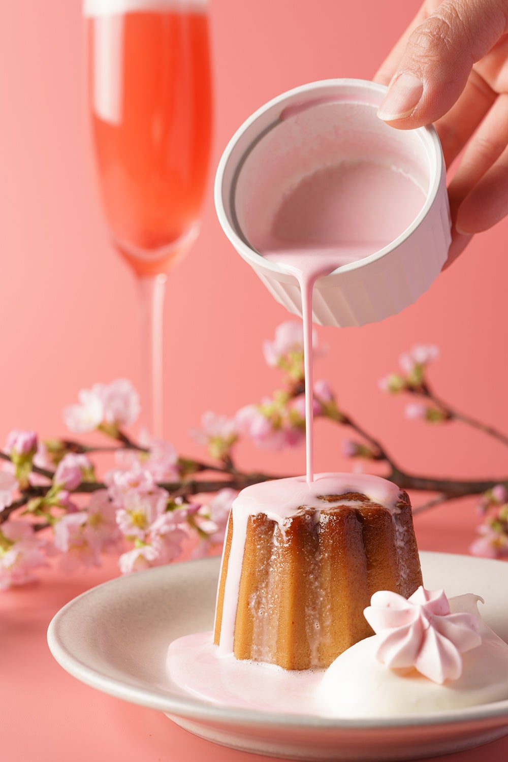 今回、カヌレプリンにかける桜ソースは、春の訪れを感じる優しい甘さとともにふわりと香る桜の花の香りを纏わせた上品な味わいのソースです。