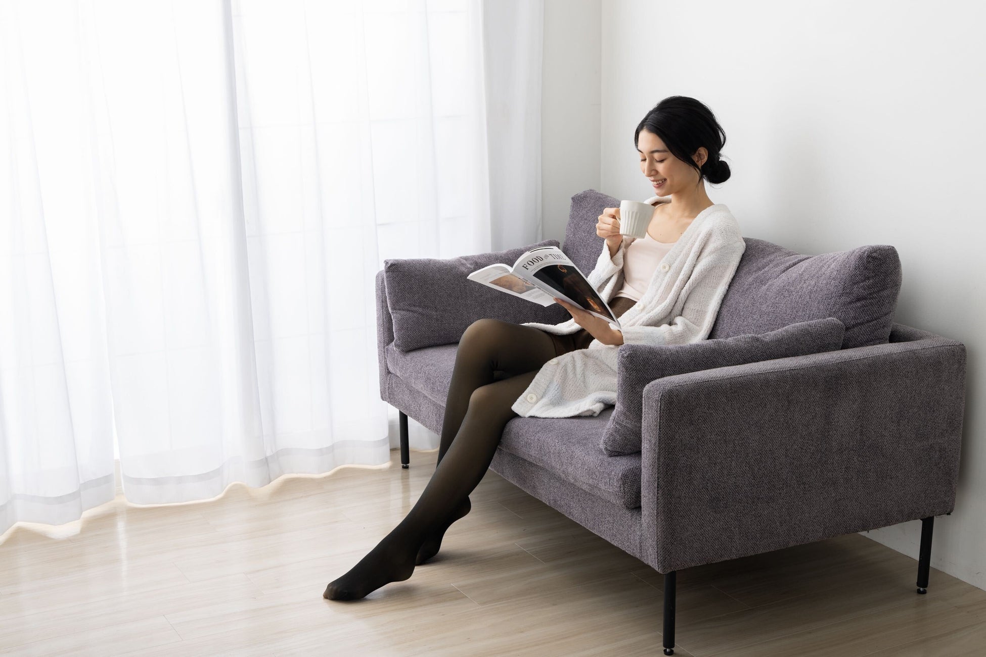 ・susabiタイツは縦方向、横方向にぐーんと伸びるようになっており、脱ぎはきがラクなうえ動きやすく、座っていても苦しくないように腰回りには締め付け感が少ないリブを仕様し、24時間快適さをキープいたします。