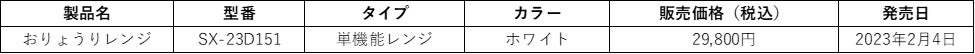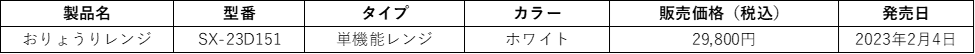 型番:SX-23D151電源:交流100V、50/60Hz共用