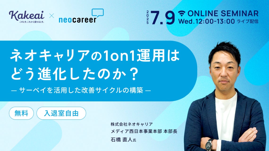 株式会社KAKEAI、属人的な1on1を脱して組織的に機能させるコツがわかる人事・管理職向けオンラインセミナーを7月9日(水)に開催