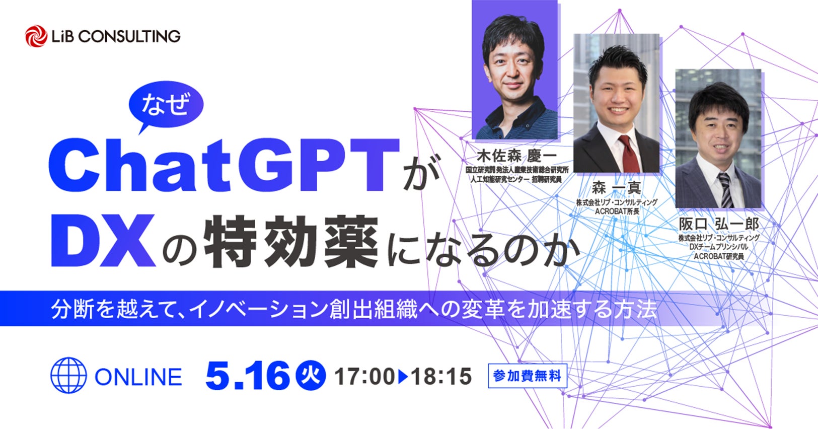 本セミナーでは、ChatGPTの機能・可能性や、従来AIとの違いからはじめ、社内のDXが進まない原因をどのように解決できるのか、具体事例を交えながら「持続的なイノベーション創出」への変革の戦略・進め方をご紹介します。