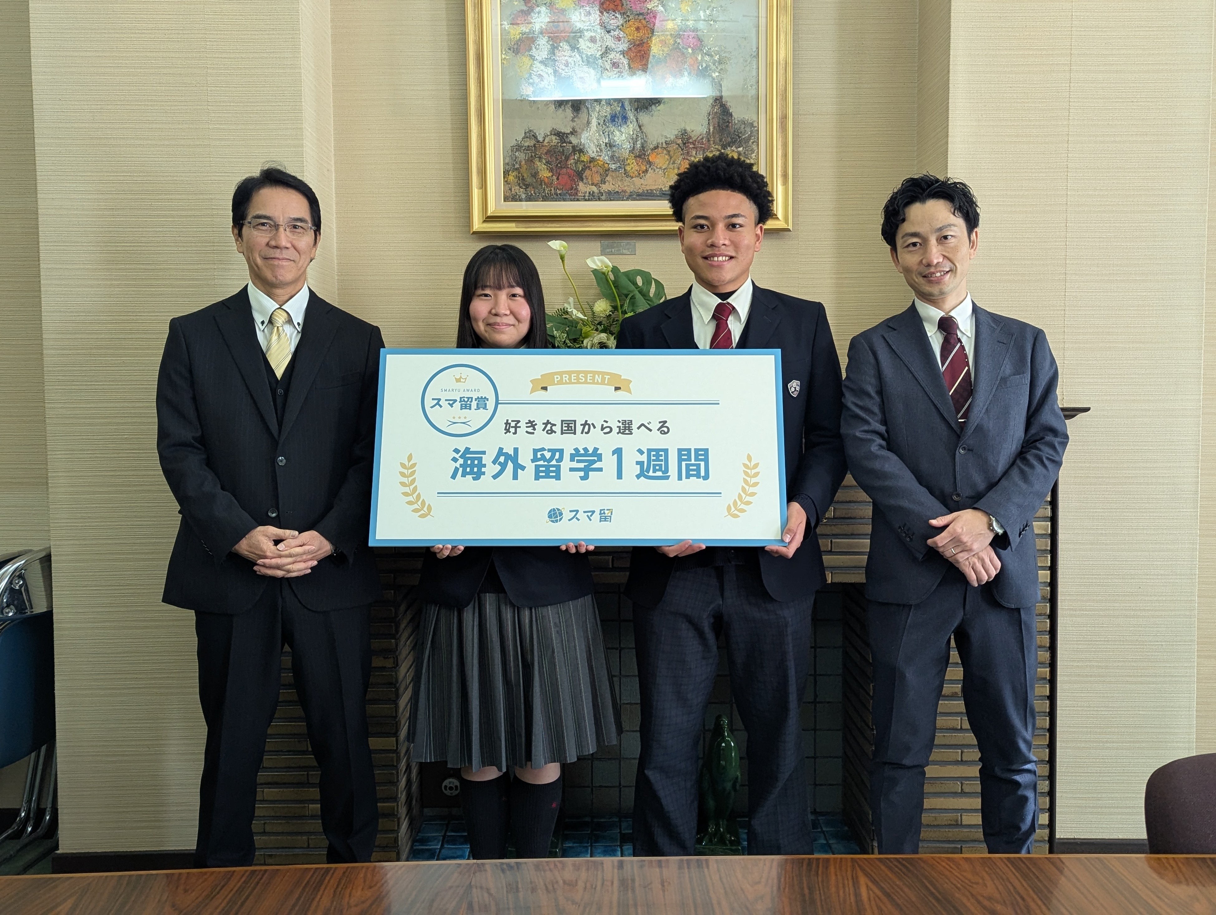 株式会社リアブロード(本社:東京都渋谷区、代表取締役:神田 慎)が運営する海外留学エージェント「スマ留」は、四條畷学園高等学校(所在地:大阪府)と締結した共創型プロジェクトの一環として、同校在学生2名を対象とした「留学奨学金」受賞式を実施しました。