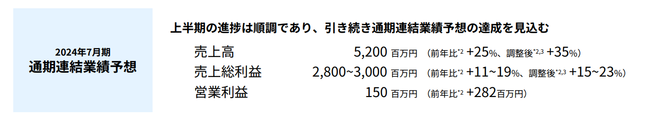 2024年7月期 第2四半期連結業績ハイライトおよび今後の見込み