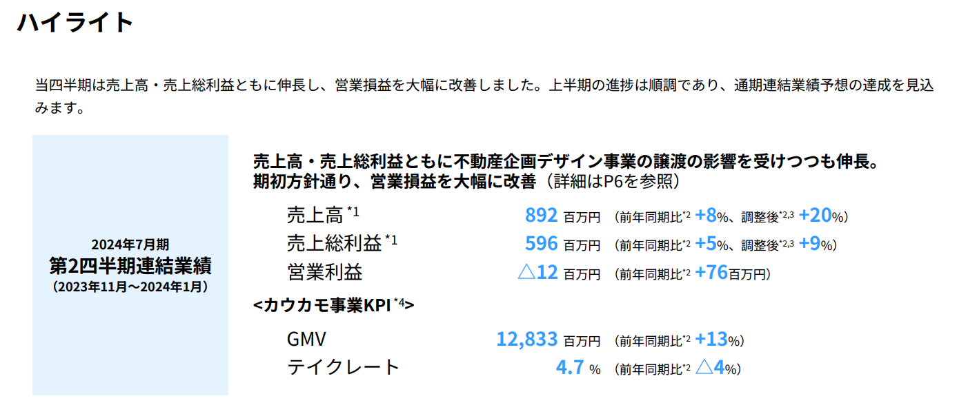 ツクルバ 2024年7月期 第2四半期決算を発表売上高・売上総利益ともに伸長し、営業損益を大幅に改善