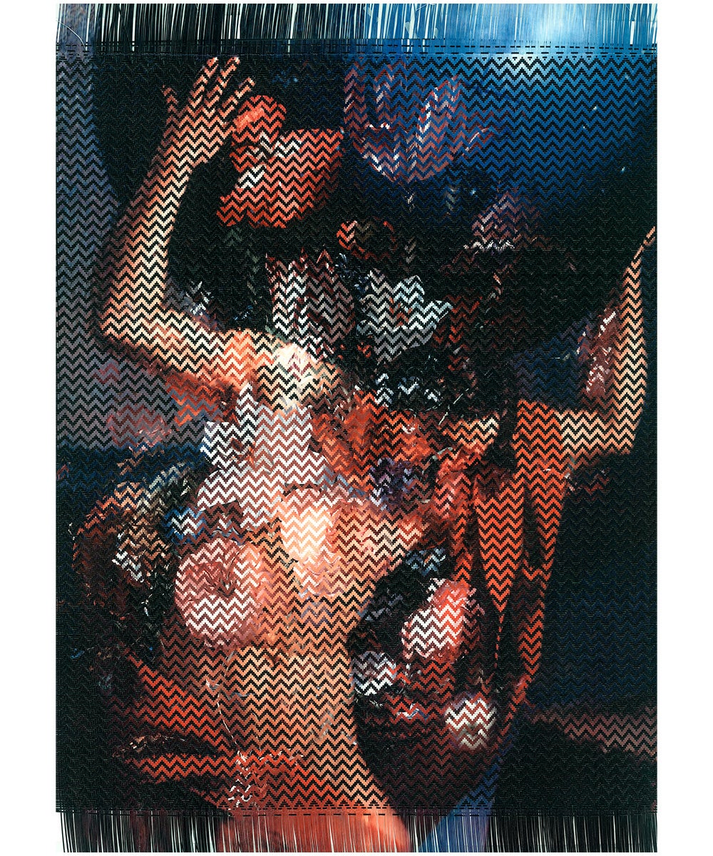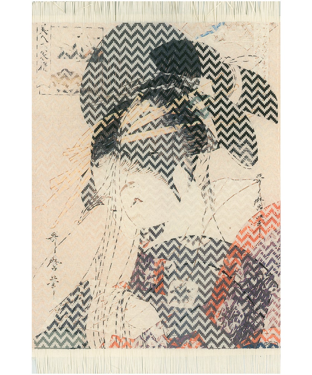 Venty氏の作風は、既存のモチーフをカッターと定規で一度1mm〜2mm程の線に分解し、編み込み、再構築、再解釈を行って制作されます。