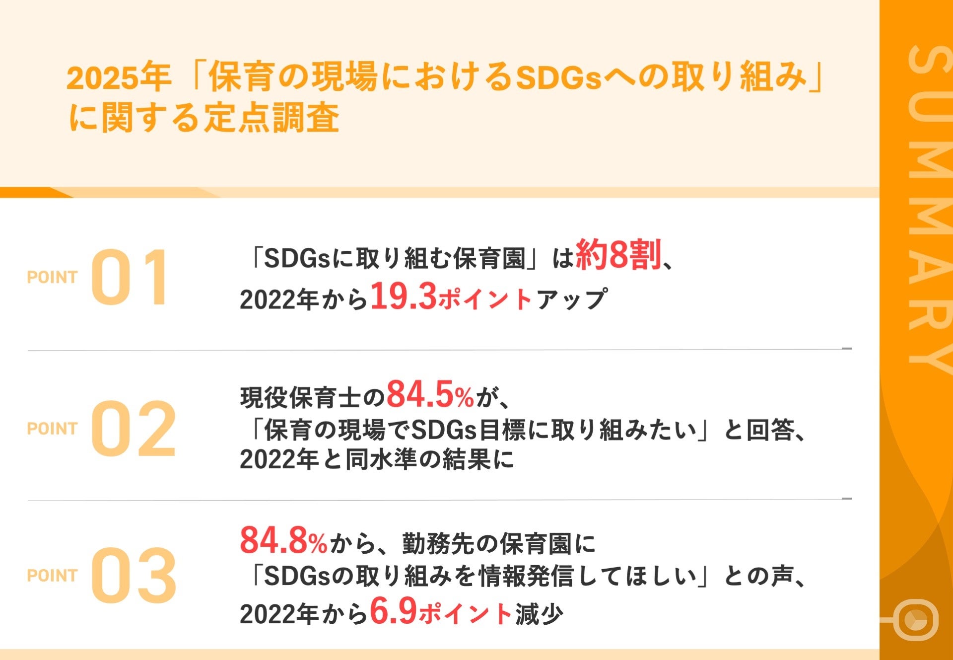 【定点調査】2025年「SDGs」に取り組む保育園は約8割 2022年調査より19.3ポイントアップ