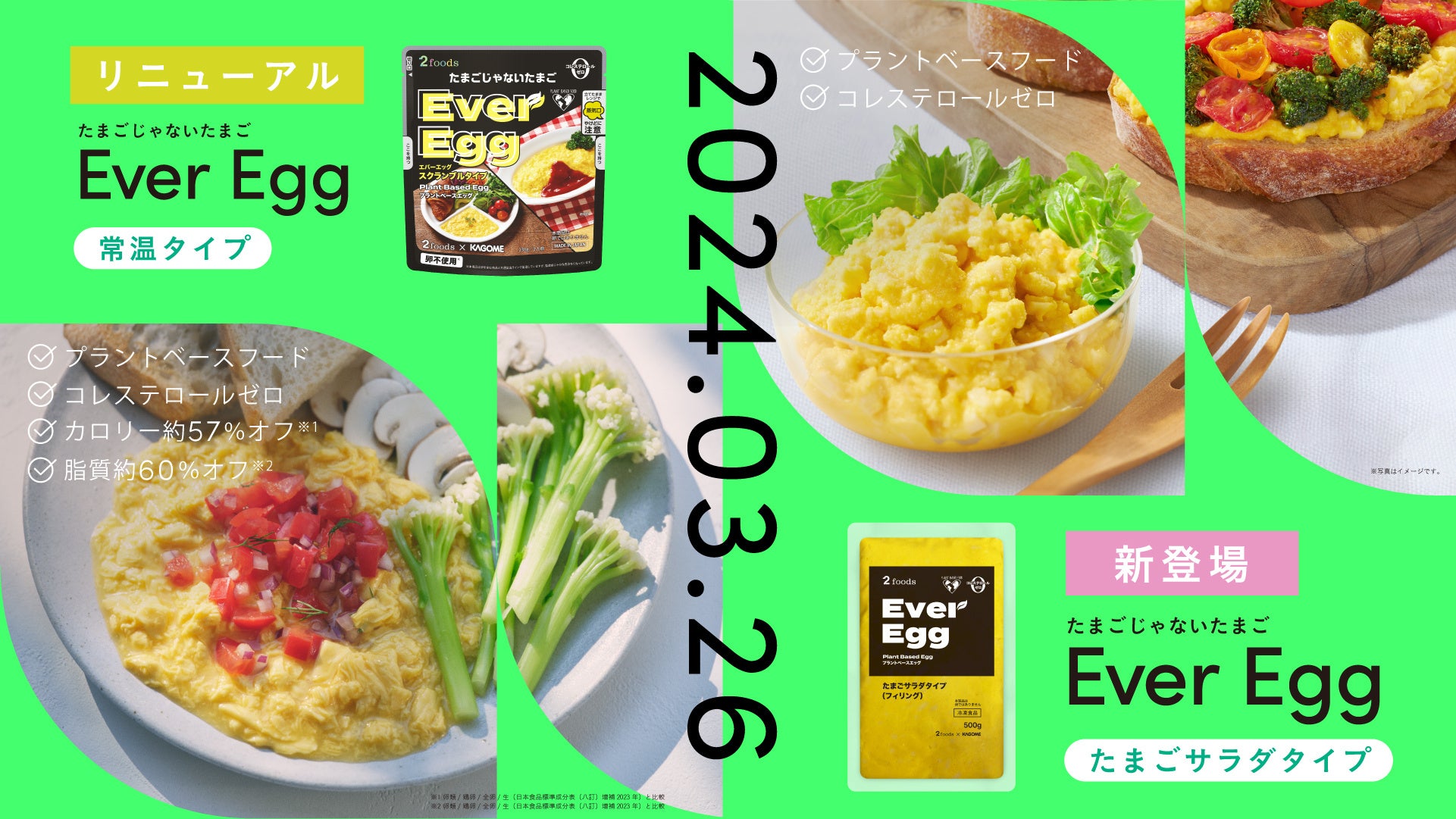 植物由来食品を展開する「2foods」と「カゴメ」が共同開発した“たまごじゃないたまご” プラントベースエッグ「Ever Egg」常温タイプを3月26日リニューアル