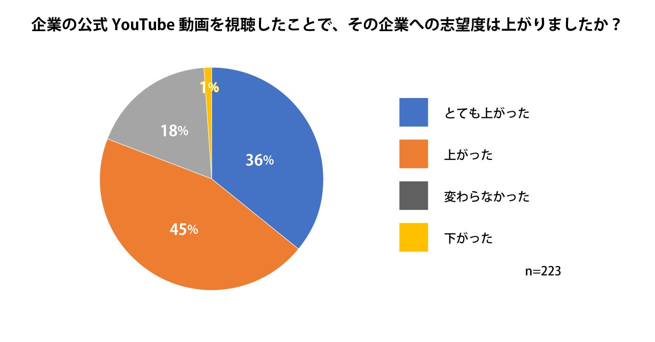 YouTube動画視聴後に企業の志望度が上がった就活生は8割以上