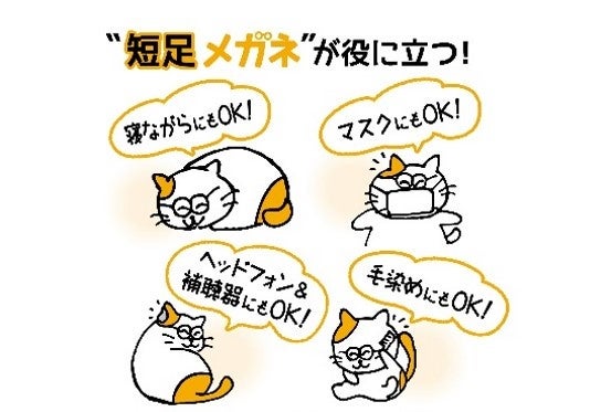 猫好きに人気のメガネ、『ねころりん』よりこめかみに掛ける”短足メガネ” 『ねころりん”ショート”』2022年8月23日(火)販売開始