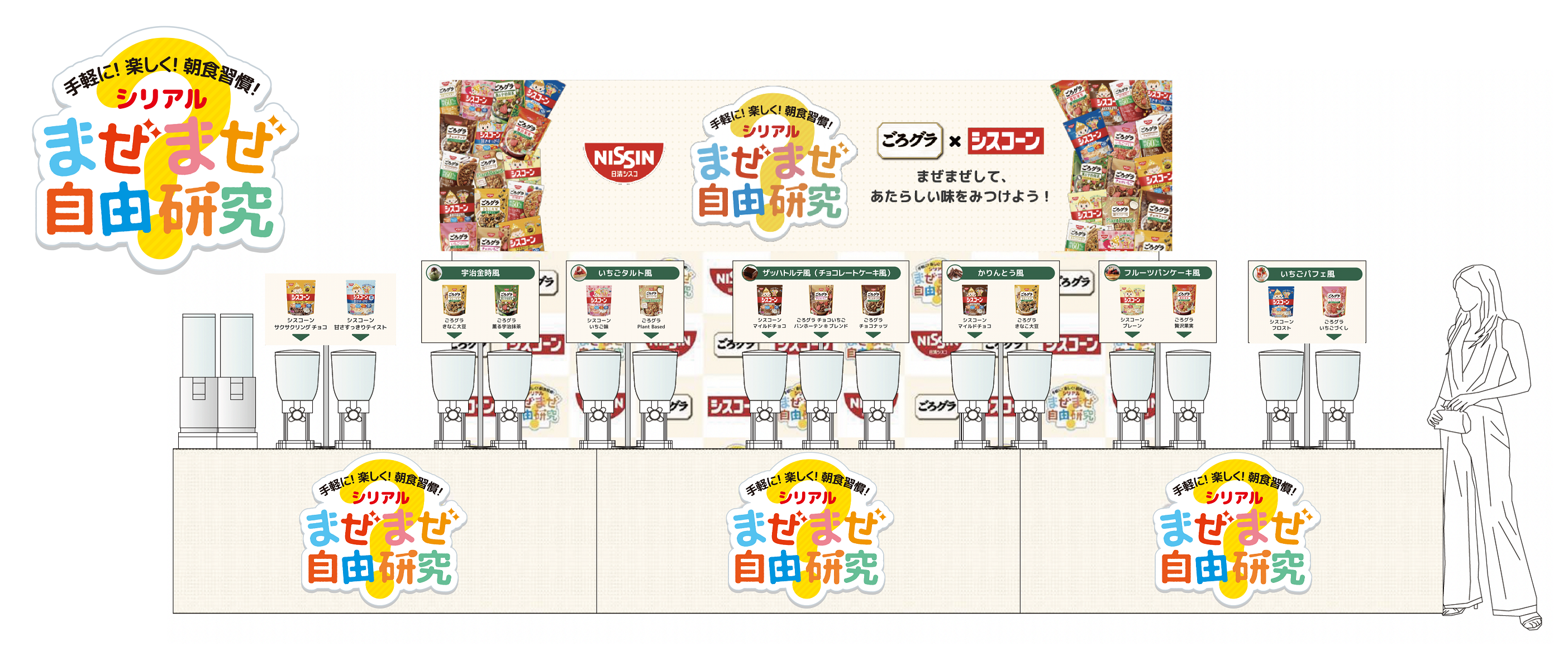 このキャンペーンに合わせて、4月6日(土)より無料でシリアルまぜまぜ体験ができる試食イベント「ごろグラ×シスコーン シリアルまぜまぜ自由研究」を開催。開催場所は岡山県から始まり、宮城県、愛知県、大阪府、福岡県、北海道、埼玉県の合計7か所を予定しています。