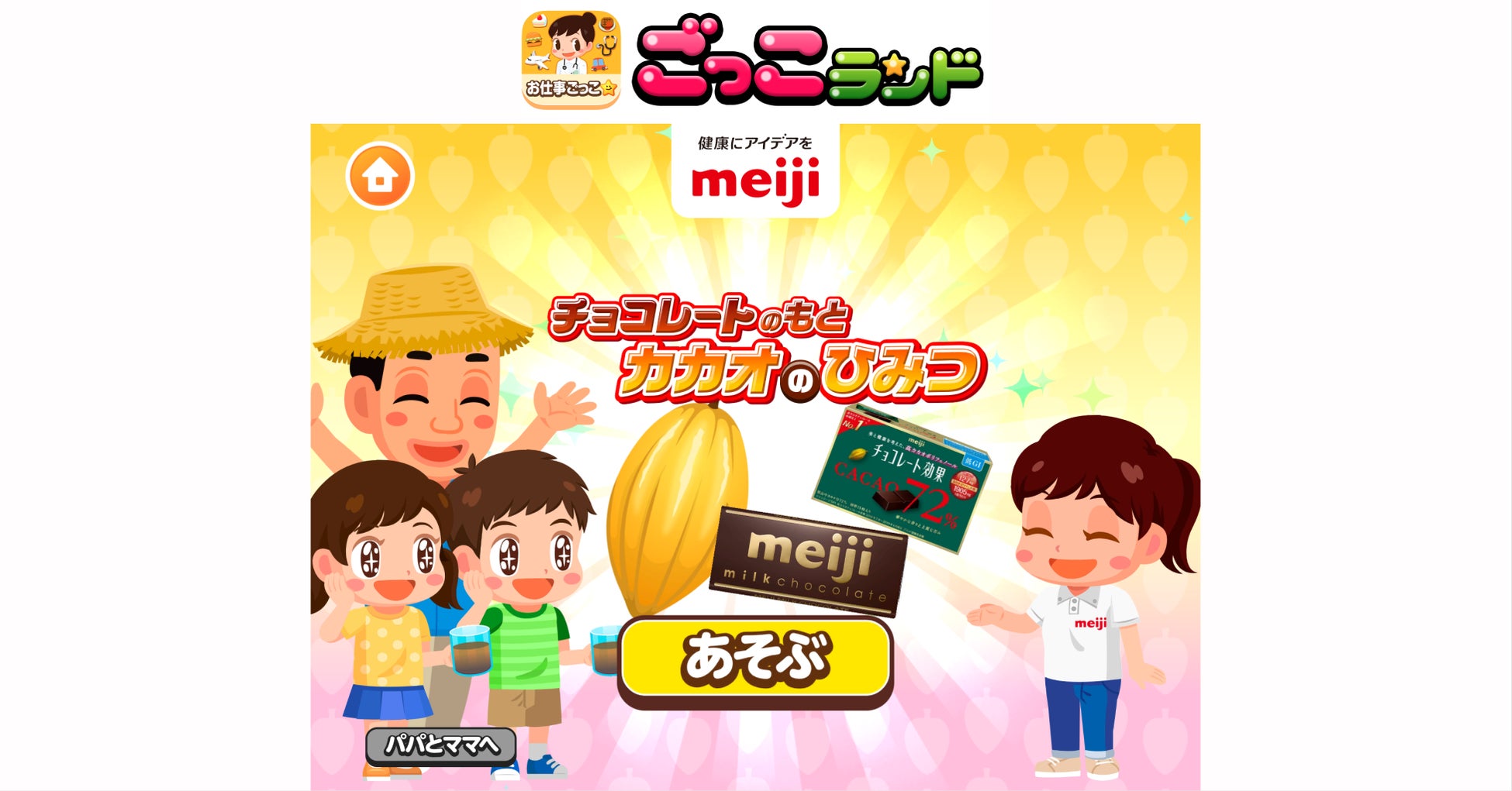 子ども向け社会体験アプリ『ごっこランド』に明治の新コンテンツ「チョコレートのもと カカオのひみつ!」が登場!