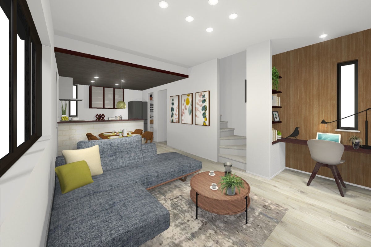 2Fリビングの一角にはテレワークや子どもの宿題スペースにぴったりなシェアカウンターを設置。