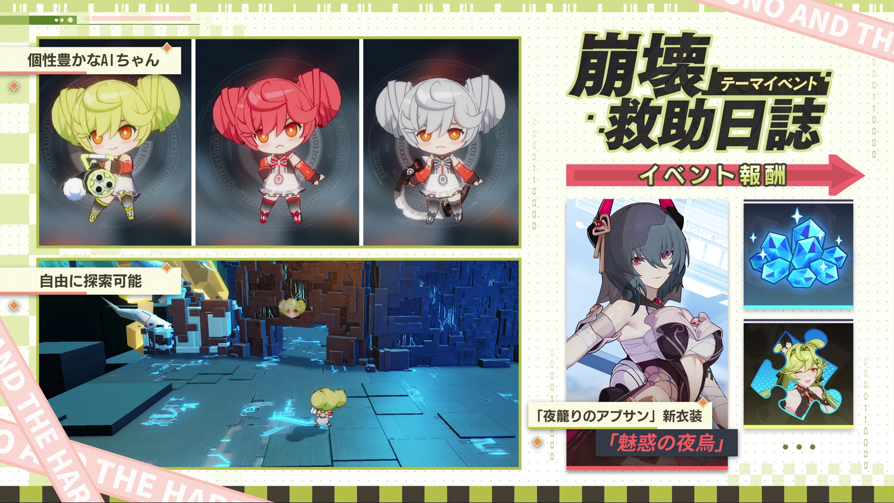 ・Ver.6.2期間中にテーマイベント「崩壊救助日誌」、メインストーリー第33章、イベント「キャベツのかくれんぼ」に参加