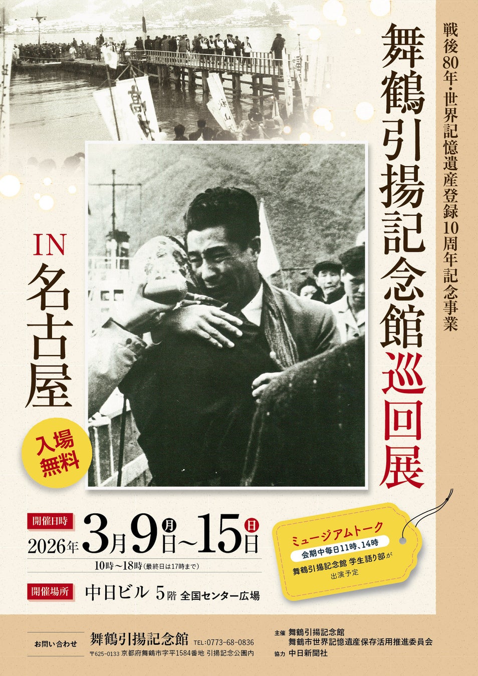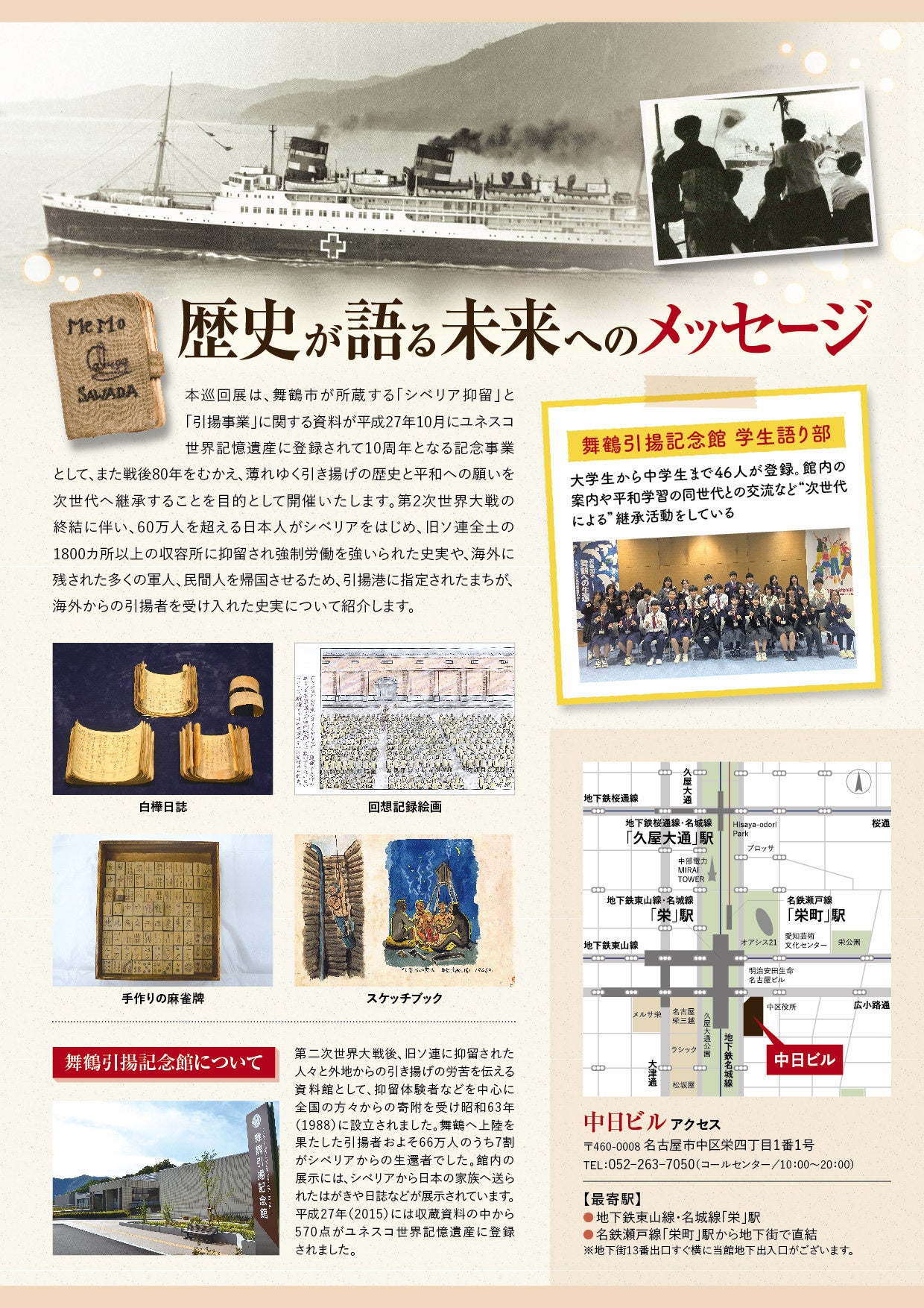 戦後80年・世界記憶遺産登録10周年記念事業「舞鶴引揚記念館巡回展 IN 名古屋」を3月9日から開催