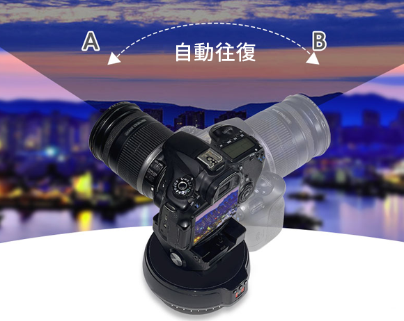 横軸と縦軸の動く方向、速度を設定して(1つの軸だけ移動することも可能)、対象物を様々な角度から自由に構図できます。