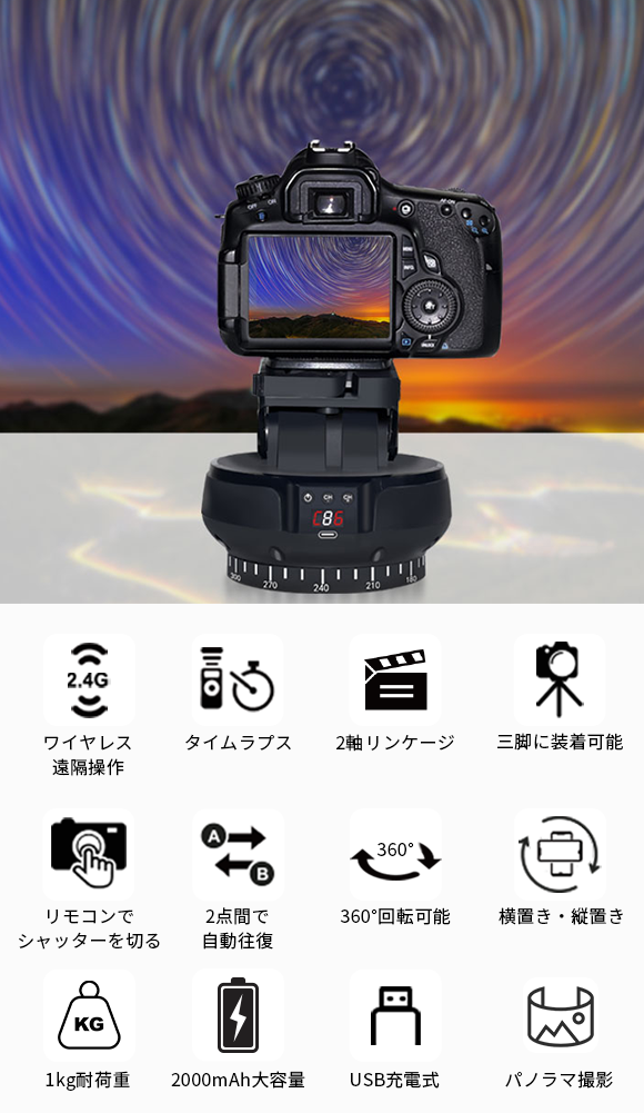 支援金額は300万円を突破しました!初心者にもおすすめ!水平360°・上下35°回転可能な電動雲台「Desiontal」5つのモード搭載、タイムラプス&パノラマも簡単に実現!