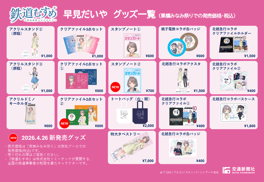 鉄道むすめ「早見だいや」の新グッズも販売開始!交通新聞社が「栗橋みなみ祭り」へ参加します