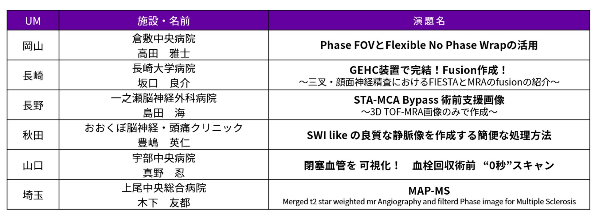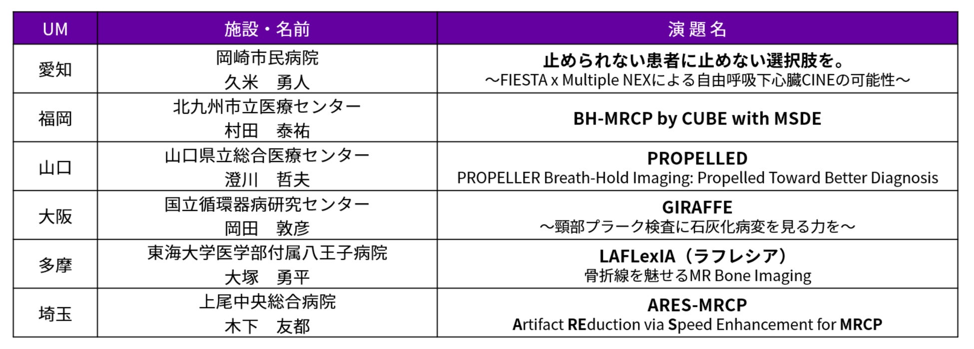 今年で20回目を迎える本大会には、全国の医療従事者からエントリーがあり、地方予選を突破した12名がMRIの臨床実用性や画質を競う『匠の技』部門と日々の工夫や効率化をテーマにした『Signaの小技』部門でそれぞれ技を競います。ぜひ、皆さまのお越しを心よりお待ちしております。