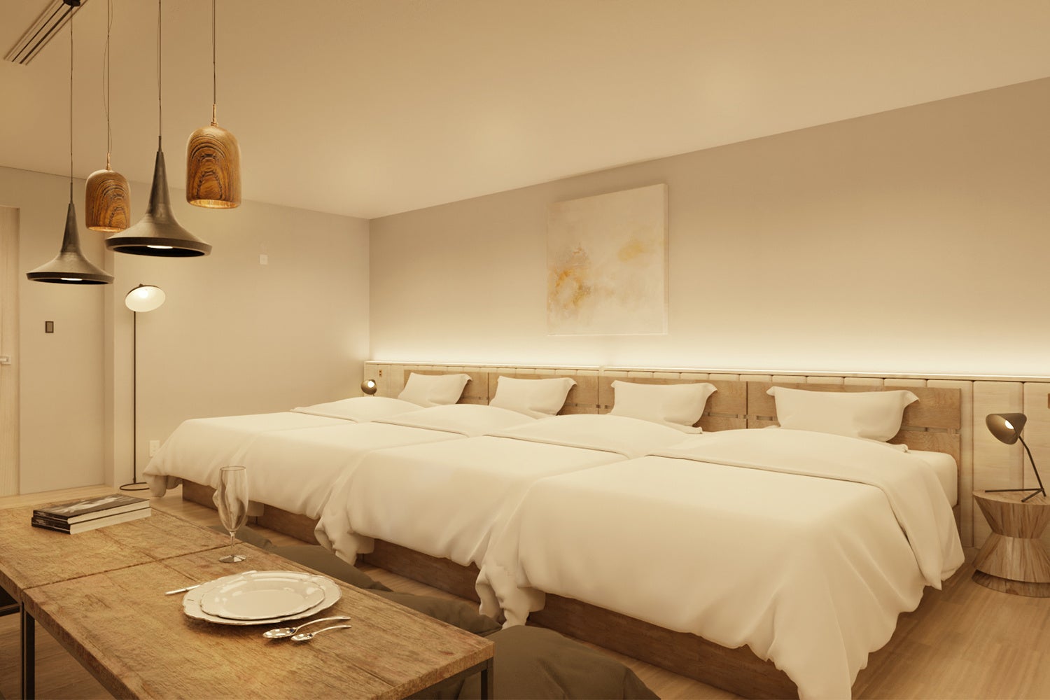 最大定員5名といずれも約80㎡の開放感ある大空間を有し、充実した客室設備と冷暖房を完備しております。一年を通じてラグジュアリーな滞在が可能です。