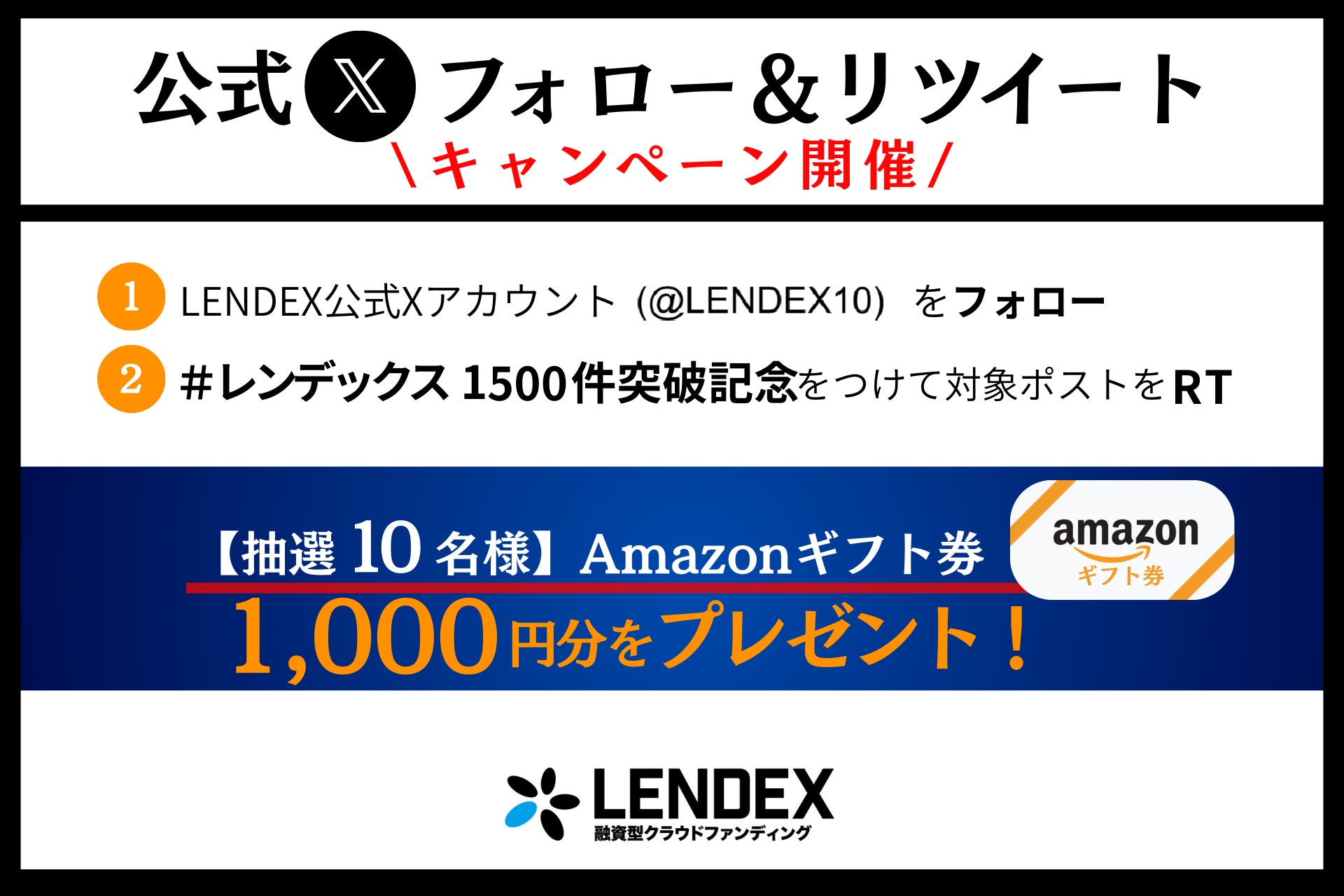 今回の1,500件突破を記念して、LENDEX公式Xアカウント(@LENDEX10)にて