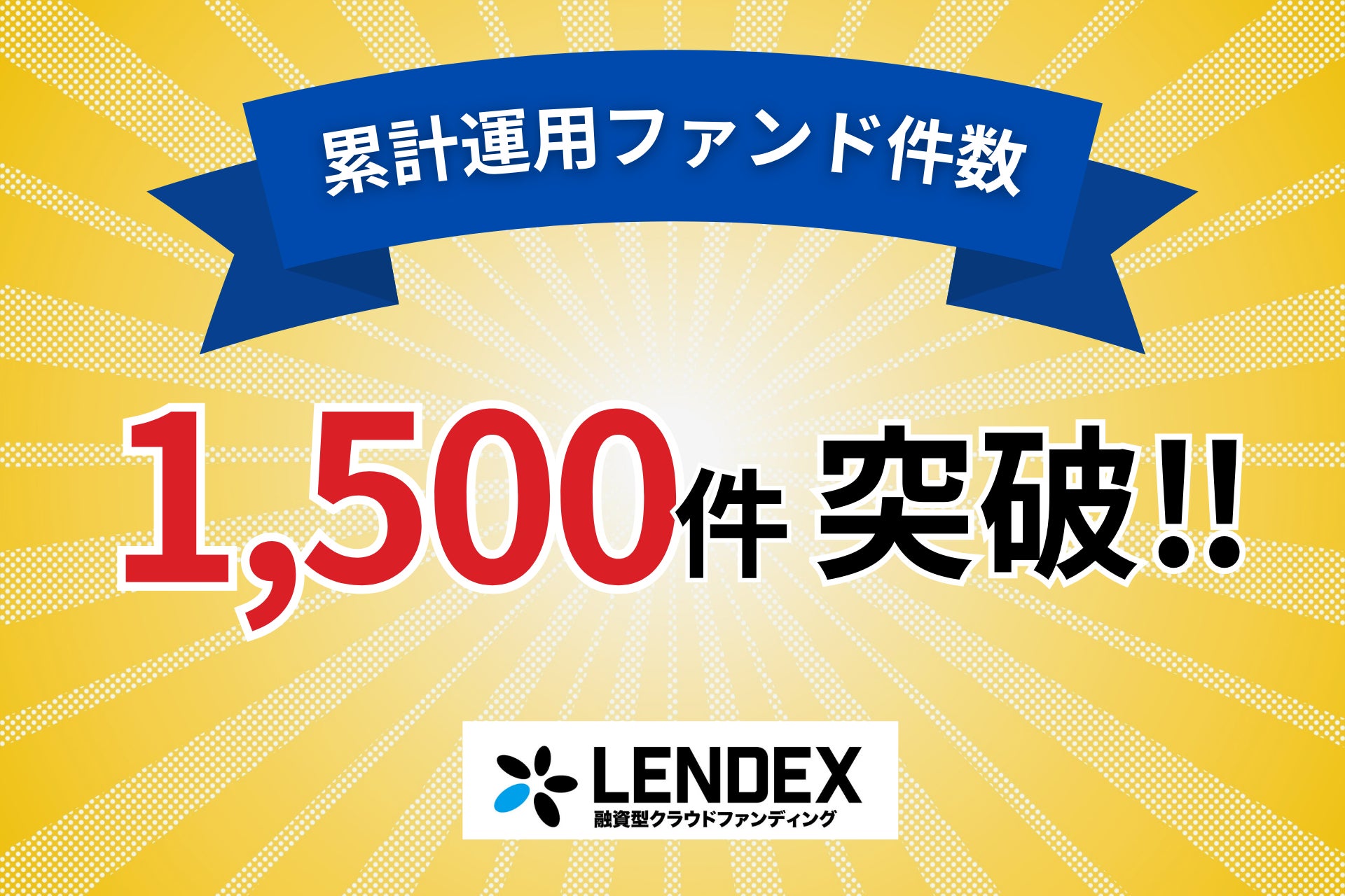 この度、融資型クラウドファンディング「レンデックス(LENDEX)」を運営する株式会社LENDEX(本社:東京都渋谷区、代表取締役:中村 智)は、累計運用ファンド件数(案件数)1,500件を突破したことをご報告いたします。