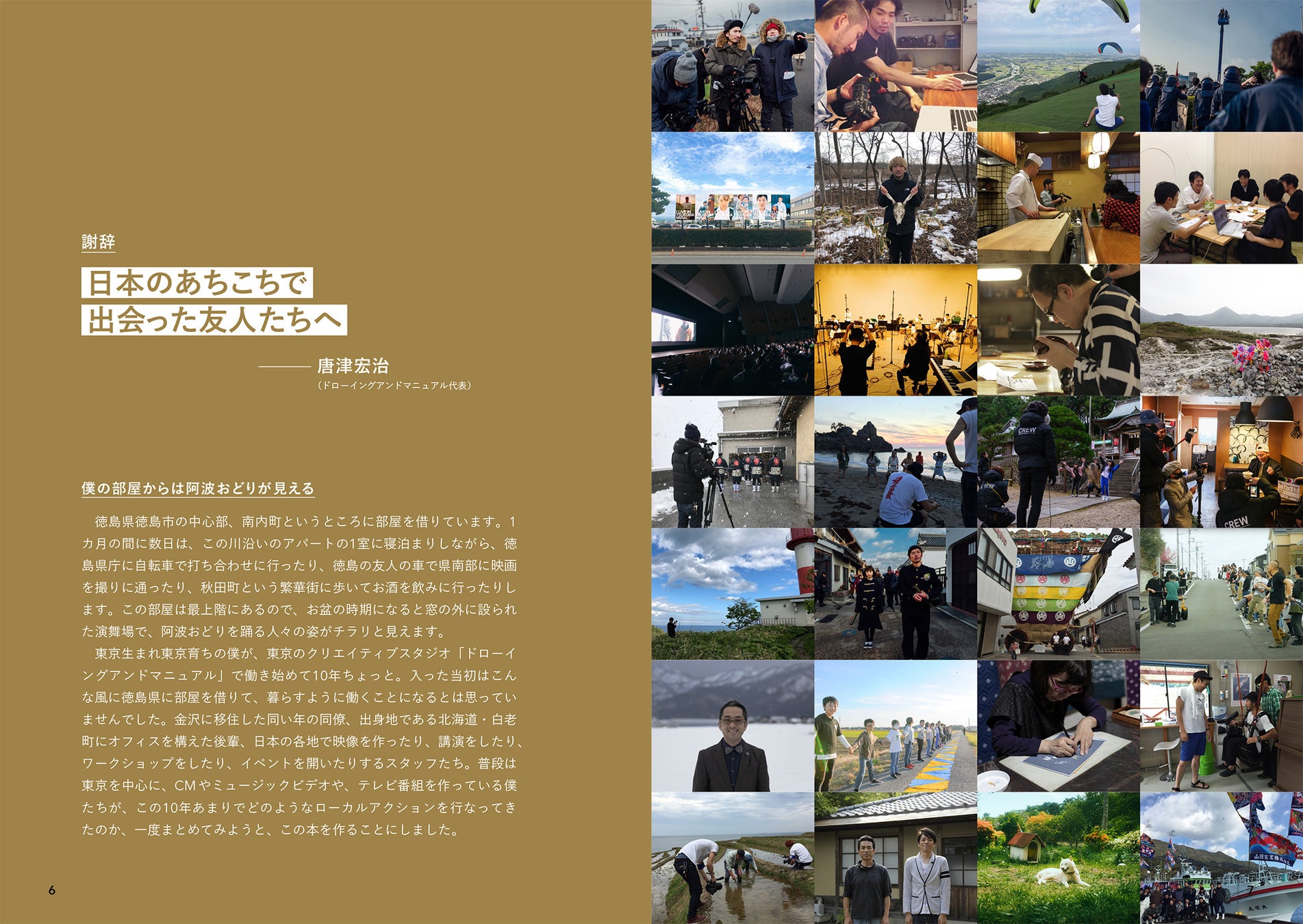 1997年創立。DRAWING AND MANUAL = 図画工作 を活動の理念とした、映像・デザインを作り続けるクリエイティブカンパニー。広告、テレビ番組、MVといった映像クリエイティブのみならず、教育コンテンツの企画制作、美術館やギャラリーでの展覧会デザインやプランニング、インディペンデントな映像企画制作、インスタレーションやアート作品の創作など、横断的なクリエイティブを精力的に続けている。また、政府機関や公共機関、自治体へのローカルアクションやサステナブル活動に寄与する持続的なプランやクリエイティブを提案している。東京都世田谷区奥沢に本社を置きながら、石川県・徳島県・北海道にも事業所を展開。合言葉は“Good Vibration.” WEB https://drawingandmanual.studio
