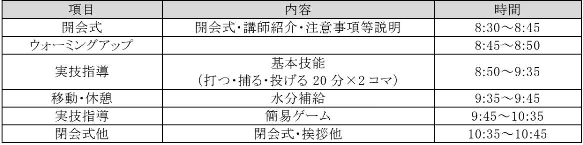 持ち物: 運動ができる服装、水分、靴。野球用具は不要です。