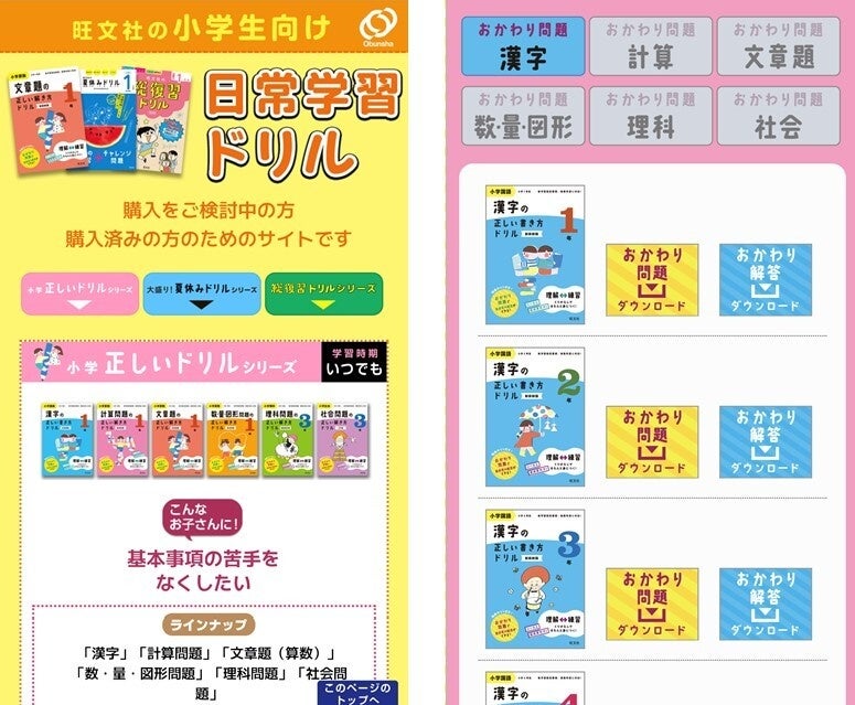 ■「旺文社の小学生向け日常学習ドリル」特典サイト