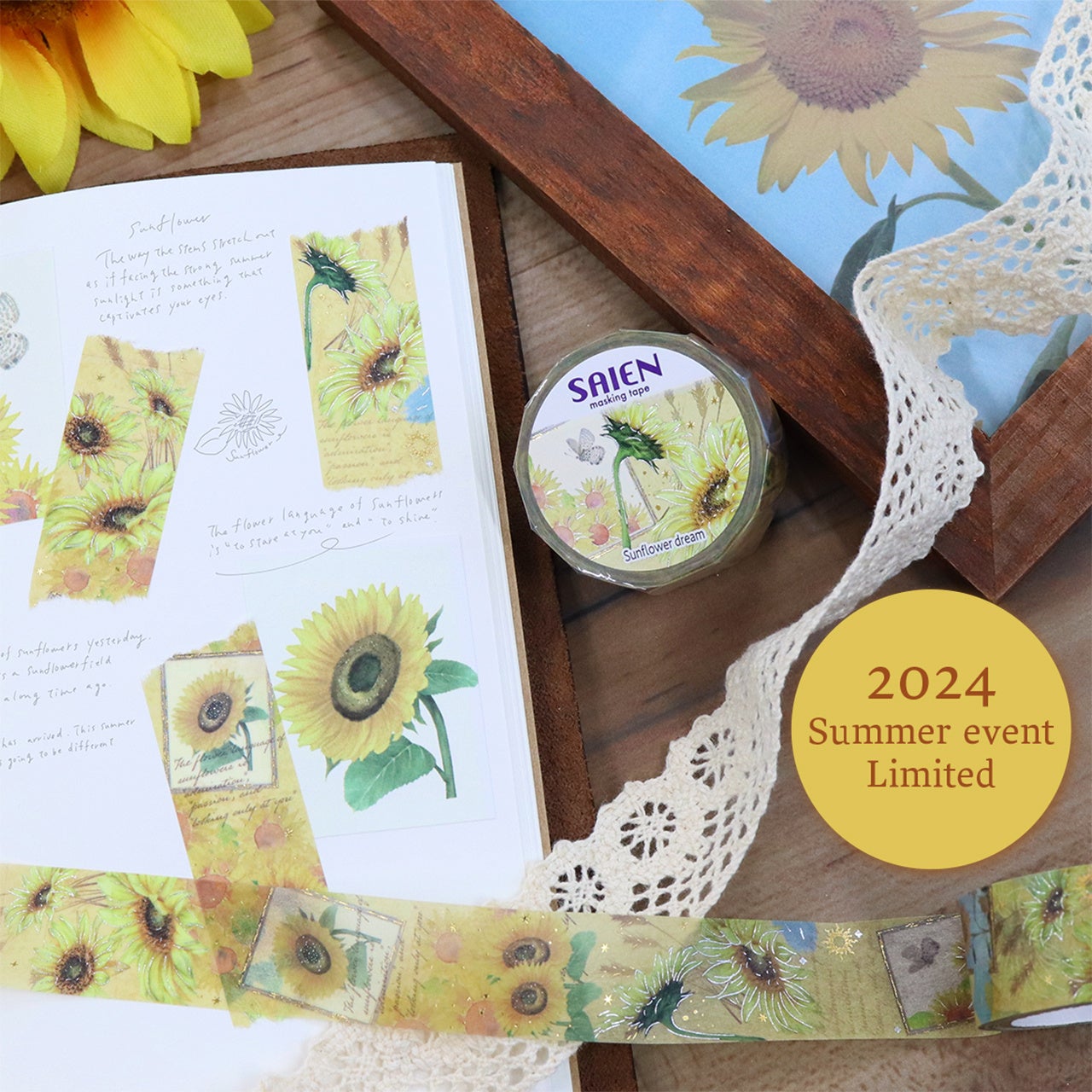 金・銀箔入りでキラッときらめくひまわりのモチーフが可愛い!縦に伸ばして使えるデザインなので手帳デコにもぴったりです!夏を感じる爽やかなデザインがあなたの持ち物を彩ってくれます♪