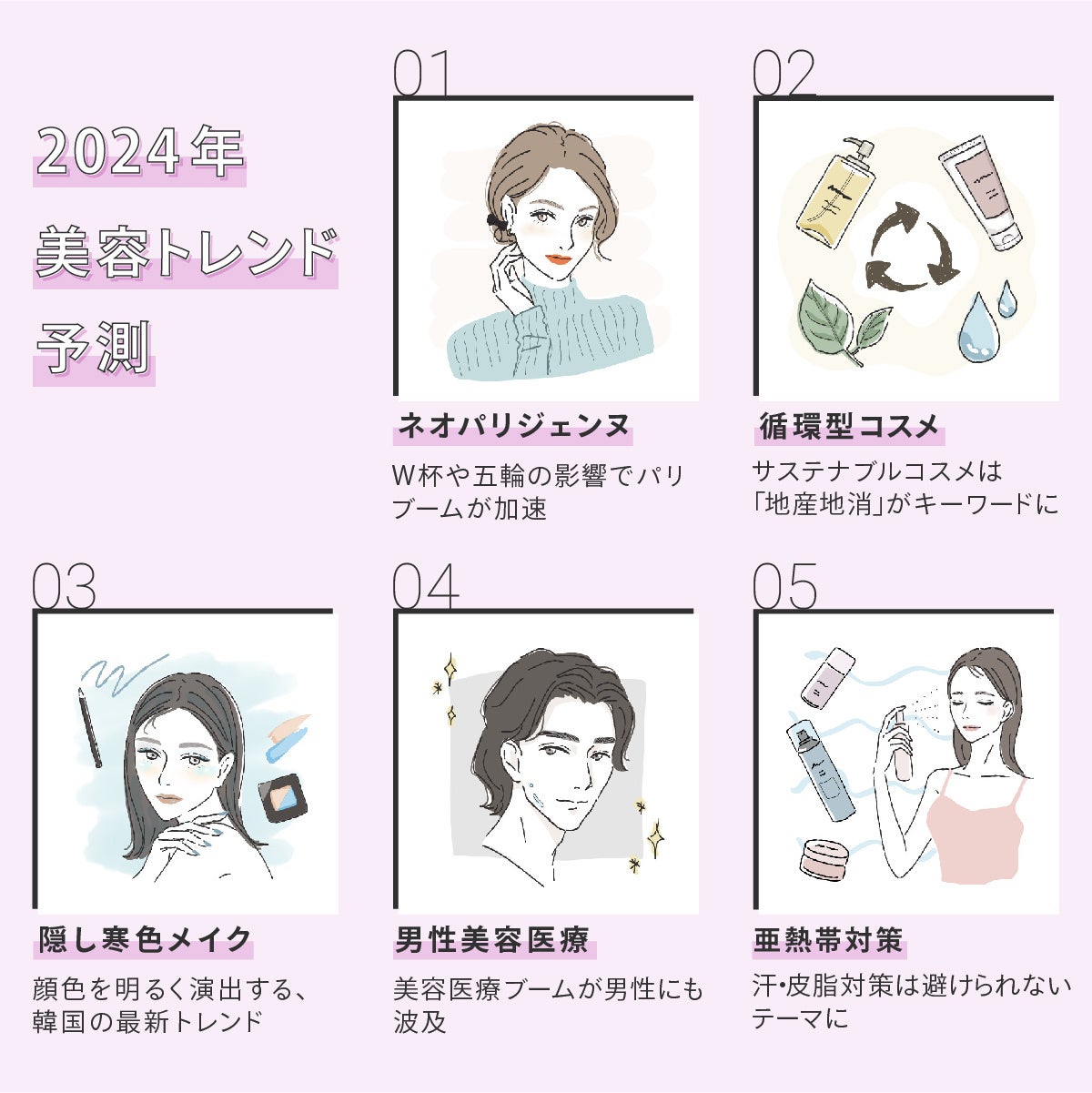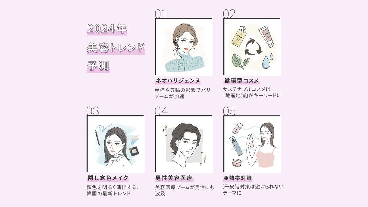 これらの活動を通して培った美容業界の幅広い知見をもとに、この度2024年に注目すべき美容トレンドとして5つのキーワードを発表いたします。