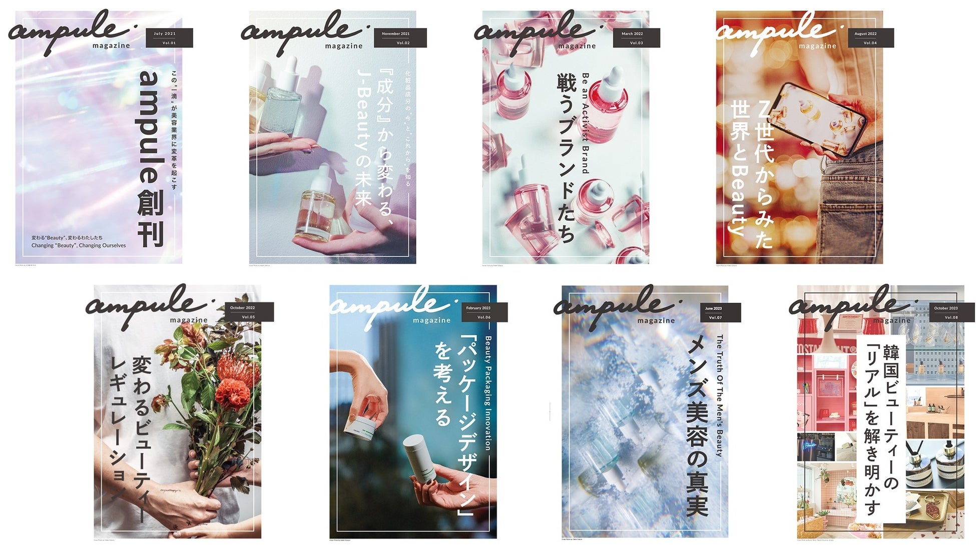 ampuleでは、美容業界の「知る」を変えるフリーマガジン「ampule magazine」を発行しております。最新号であるVol. 08は「韓国ビューティーの『リアル』を解き明かす」をテーマに、世界的な人気を博す韓国コスメを「アート性」の面から特集。「フリーペーパー・オブ・ザ・イヤー 2023(主催:一般社団法人ワオンプロジェクト/フリーペーパー専門店「はっち」)」では「WEB投票部門賞」を受賞いたしました。「ampule magazine」は、バックナンバーを含めすべてWeb上で公開しております。以下URLよりご覧ください。