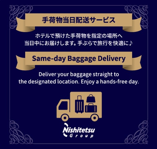 西日本鉄道株式会社(福岡市博多区、代表取締役社長執行役員:林田 浩一)は、株式会社エニキャリ(東京都千代田区、代表取締役:小嵜 秀信)と提携し、株式会社西鉄ホテルズ(福岡市中央区、代表取締役社長:豊福 辰也)が運営する福岡市内の6ホテルにおいて、スーツケースなどの手荷物をフロントでお預かりし、当日中にJR博多駅へ配送するサービスを2025年3月17日より開始します。