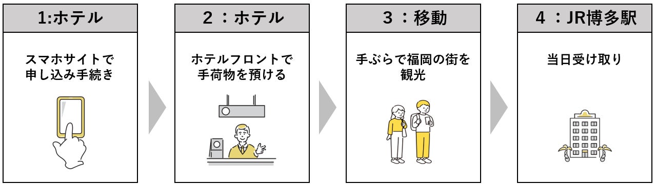 近年、福岡には国内外問わず多くの観光客が訪れています。スーツケースなど大きな手荷物を持ったままの観光は、観光するお客さまにとって不便であり、鉄道やバスなど公共交通機関の混雑を引き起こす要因にもなっています。本サービスをご利用いただくことで、お客さまは手ぶらで快適に観光ができるほか、スーツケースと人との接触や転倒事故の抑止が期待されます。