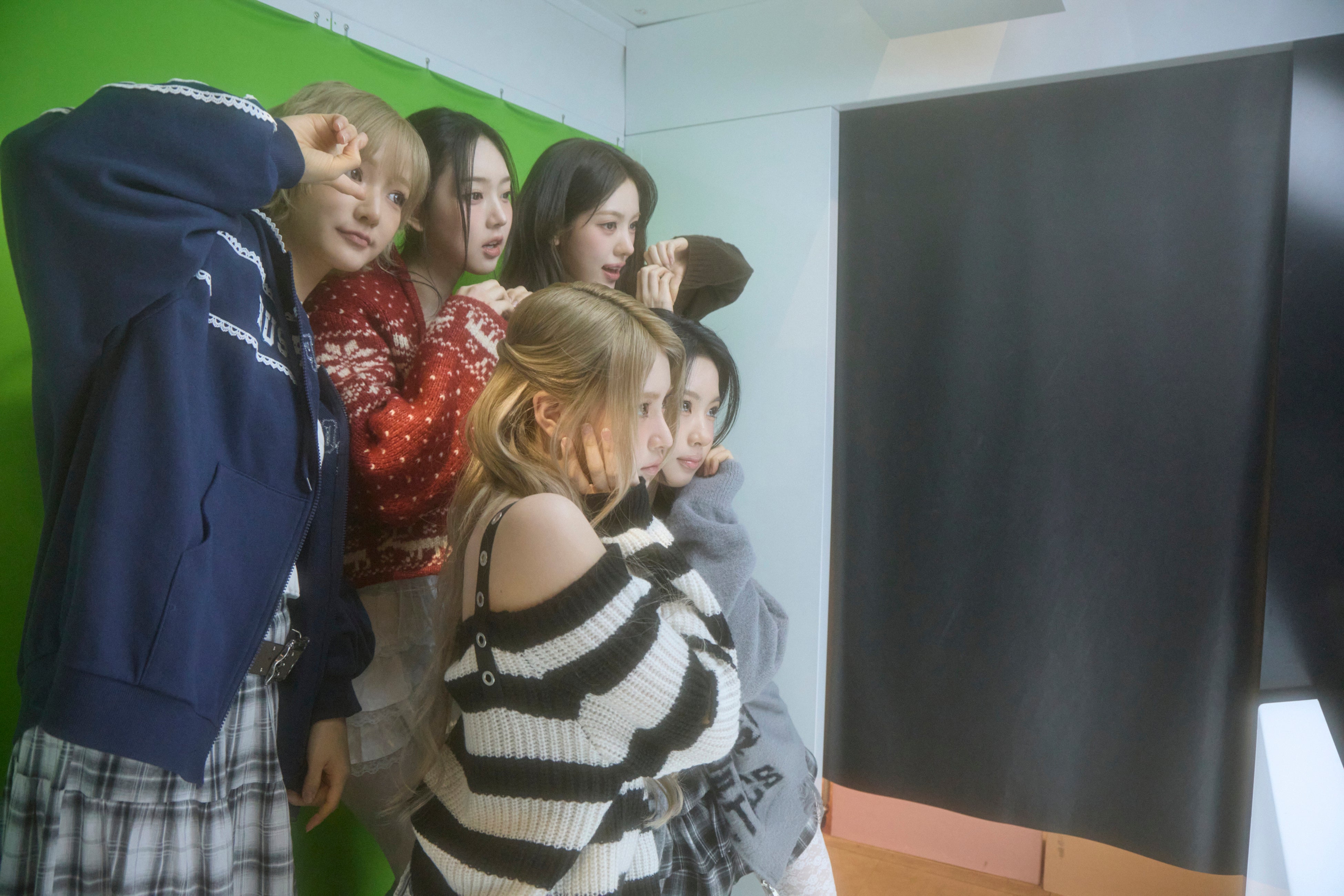 「KiiiKiii」仕様にデコレーションされた店内の鏡の前では、フィルムカメラを使った記念撮影も実施。ジユがシャッターを切り、5人の自然体な表情が収められました。その後、店内奥のプリ機コーナー「プリパーク」に移動し、日本ならではのプリを全員で体験。トレンドの平成レトロなプリ機で、この日の思い出をシールに残しました。
