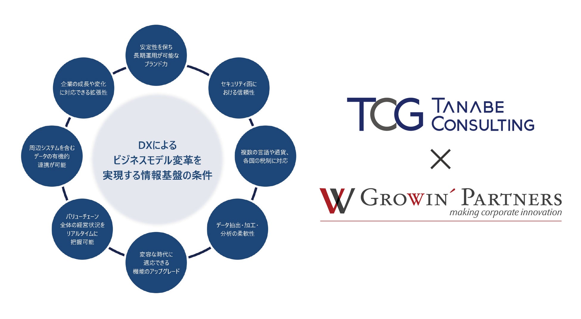 タナベコンサルティングによる「中期経営計画・事業戦略策定コンサルティング」に、グローウィン・パートナーズの「会計・人事・IT(ERP)コンサルティング」が加わることで、総合的なチームコンサルティングが可能。クライアントのDX実現による企業成長を支援いたします。